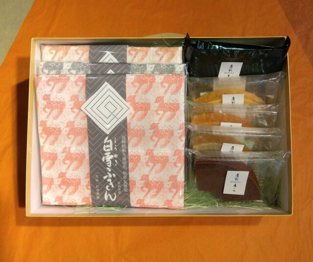 "花"ギフト (鹿柄ふきん3枚、カットバウム5個)